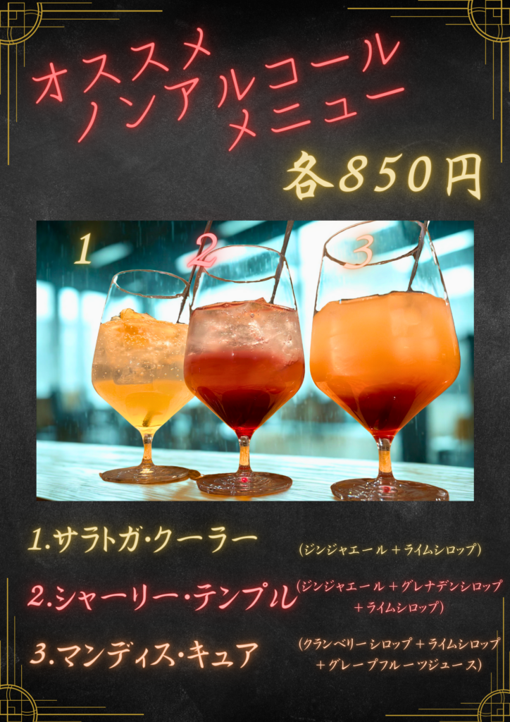 続きまして、こちらはグランドメニューとしてあるノンアルコールカクテルです
