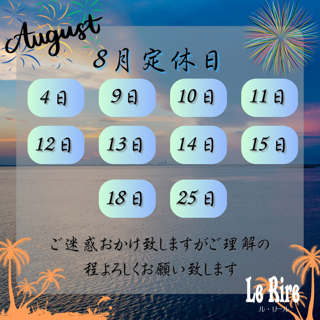 次は8月定休日のお知らせです