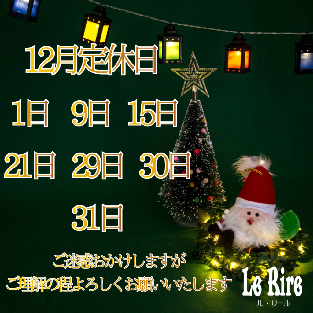 お知らせ 12月定休日 こんばんは、レストランLe Rireです。投稿が遅くなりましたが12月定休日のお知らせです ・12月1日・12月9日・12月15日・12月21日・12月29日・12月30日・12月31日 上記の日が定休日となります。ご迷... 2025.12.10 詳細はこちら