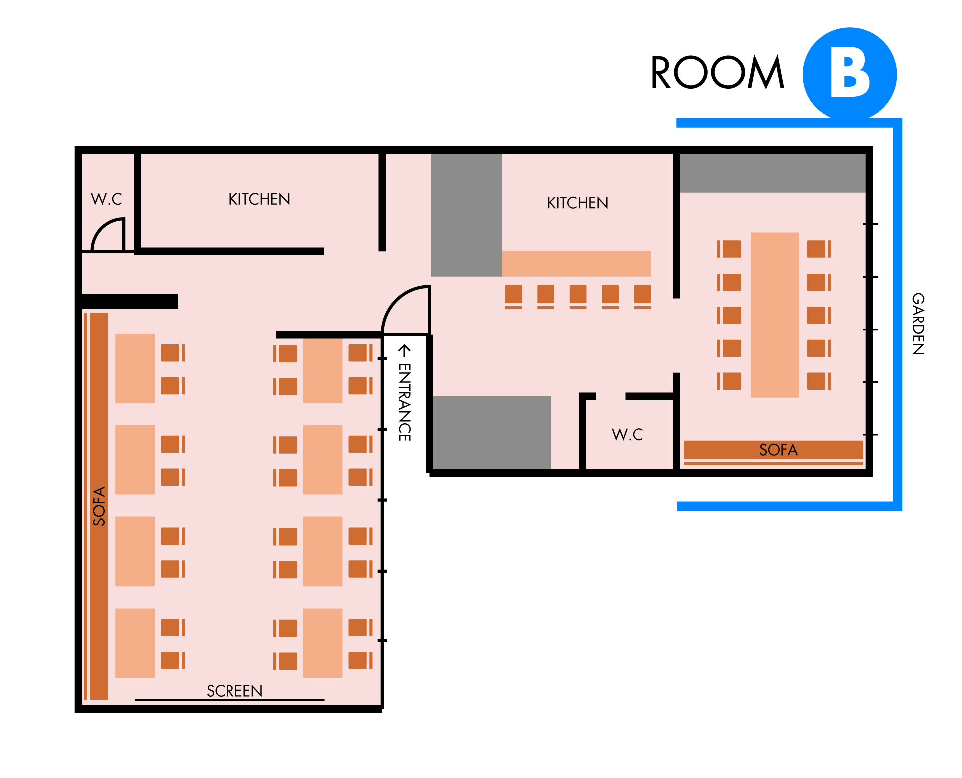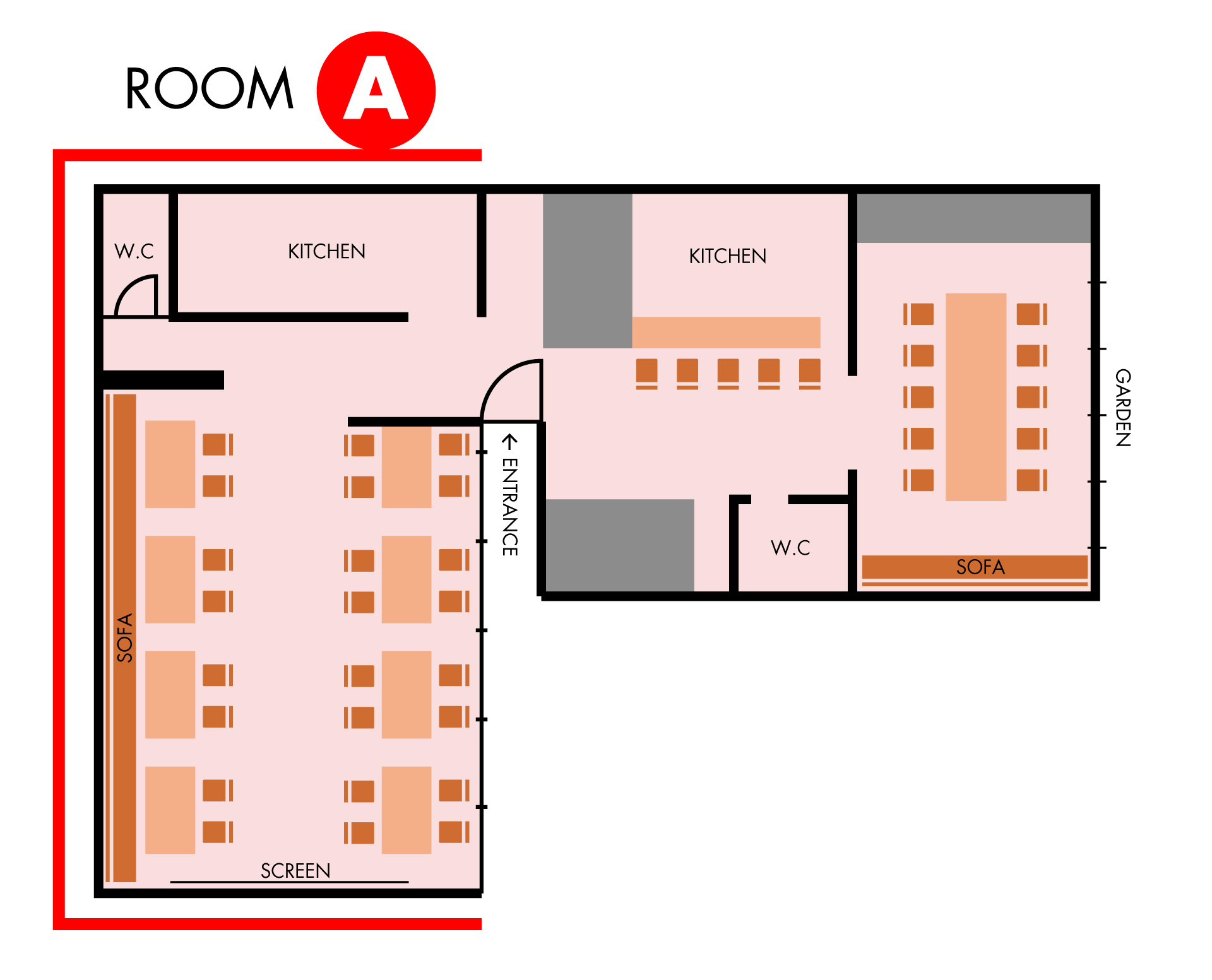 大型スクリーンがありますROOM Aは、20名様から貸し切り可能です。
